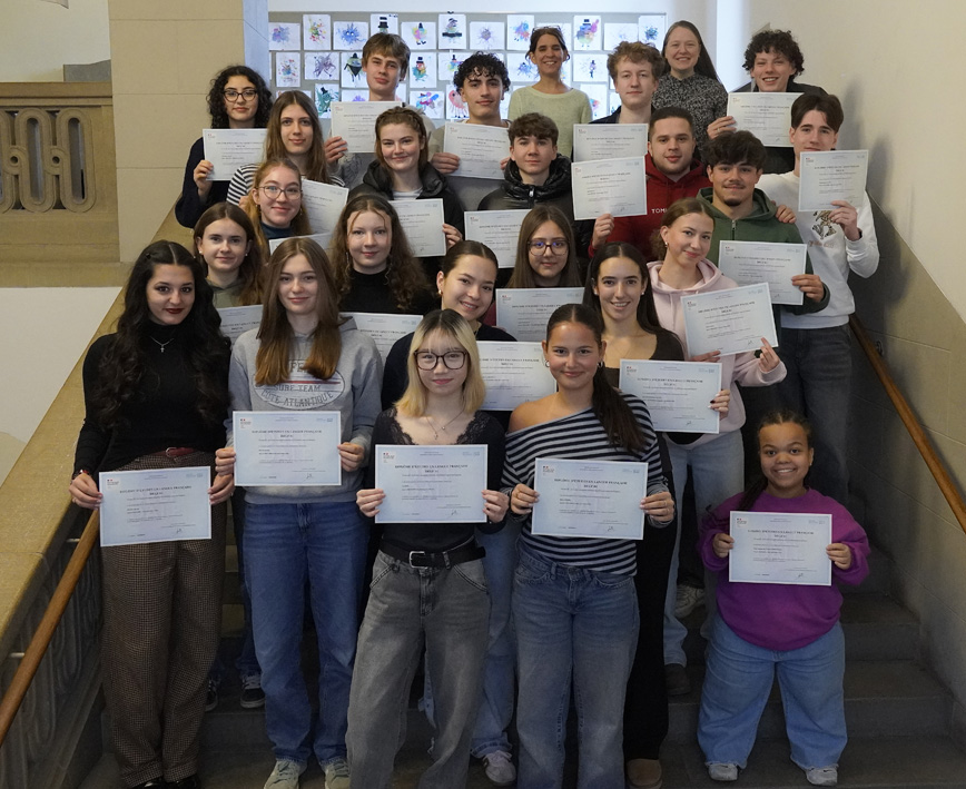 Sprachzertifikat erhalten Auch im Schuljahr 2024/2025 unterzogen sich alle zehnten Klassen der zentral gestellten DELF-Klassenarbeit in Französisch, um sich in den Kompetenzen Hör- und Leseverstehen sowie Schreiben prüfen zu lassen. Damit war der Grundstein für das DELF-Diplom gelegt. 26 Schülerinnen und Schüler nahmen anschließend…